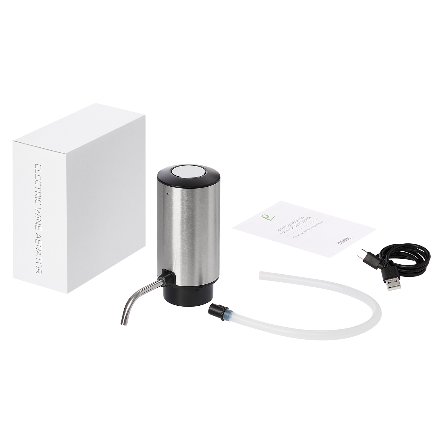 Материалы: Нержавеющая сталь и ABS-пластик для корпуса, силиконовая трубка для бережного контакта с вином.