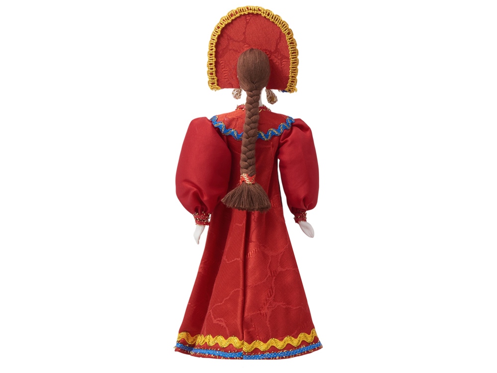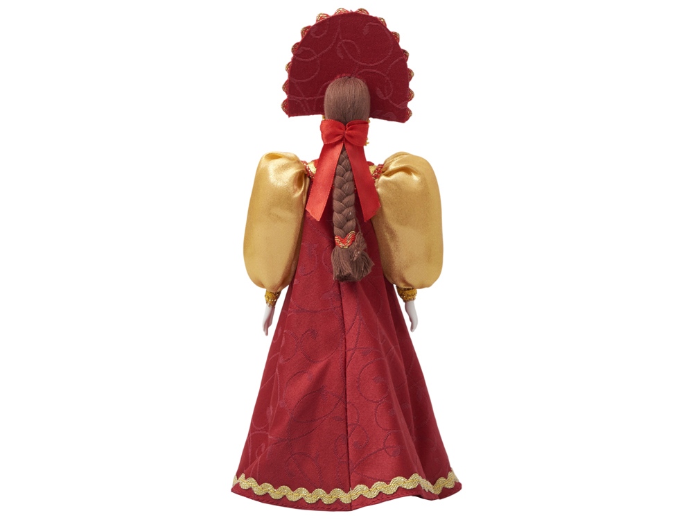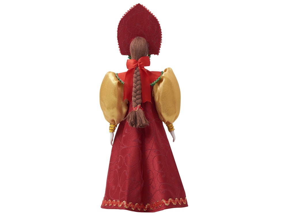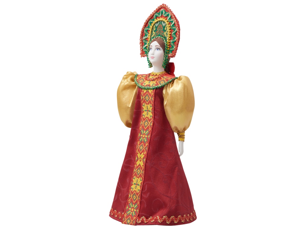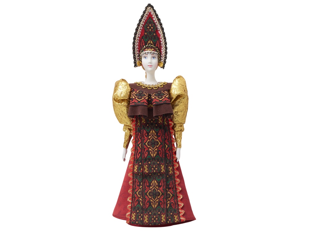 - Фарфоровая кукла в народном костюме ручной работы: расписной сарафан и кокошник с традиционной вышивкой воссоздают образ русской красавицы.