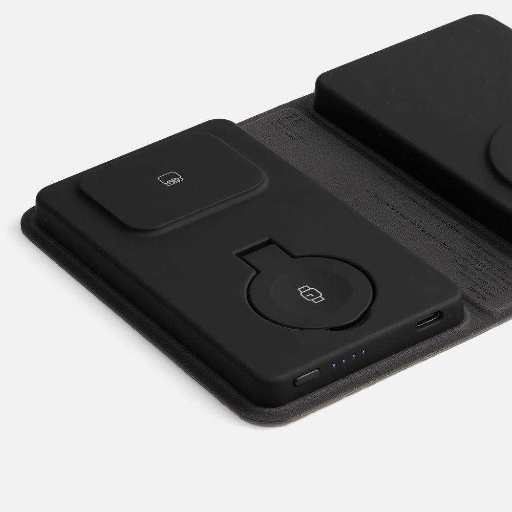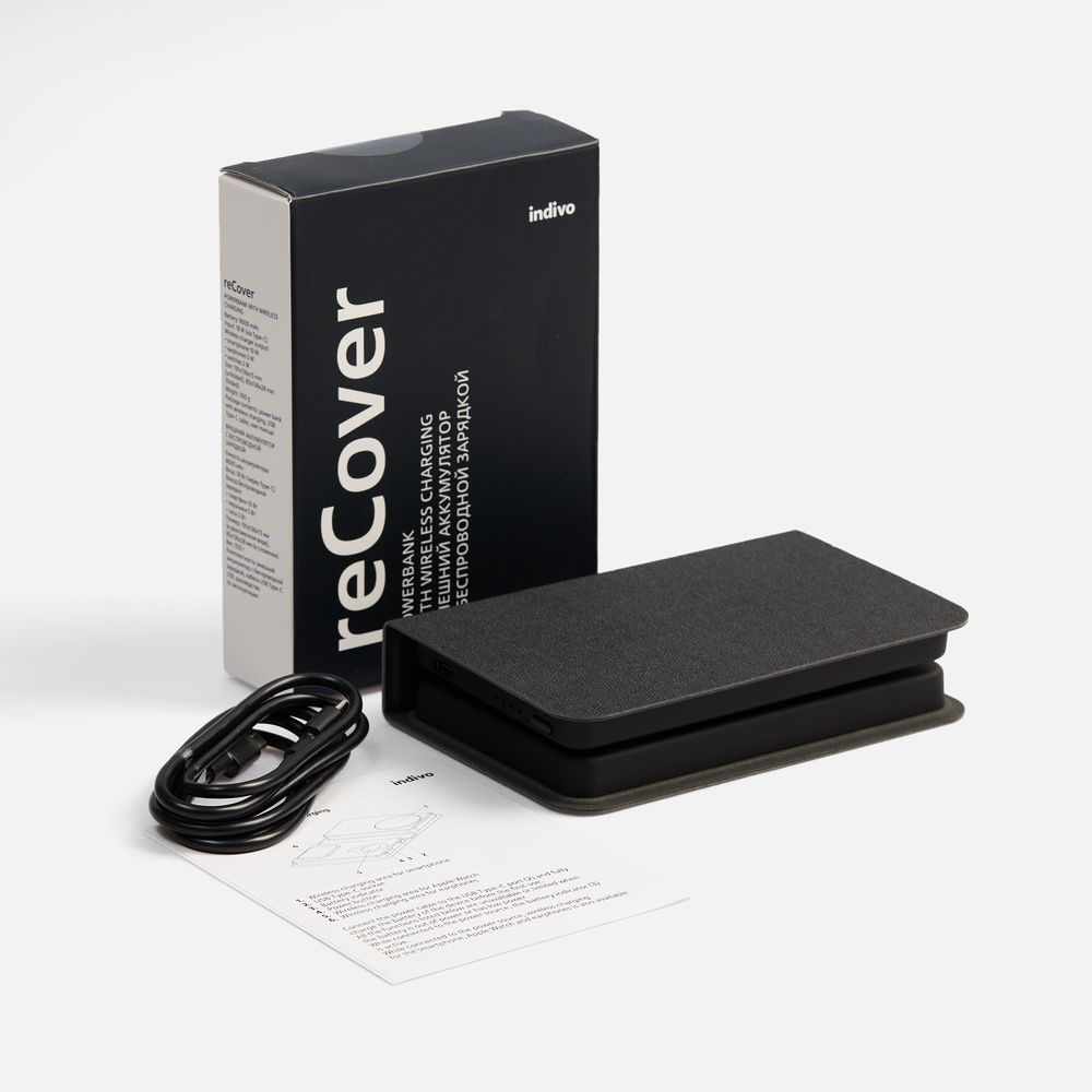 reCover — компактное технологичное устройство, которое эффектно сочетает в себе внешний аккумулятор и многофункциональную станцию беспроводной зарядки. Девайс не требует подключения к сети для подзарядки, поэтому его можно использовать как в офисе, так и в дороге.