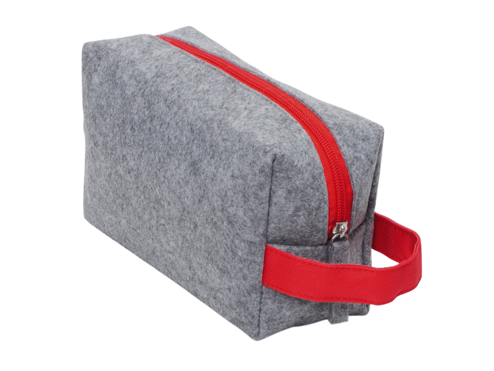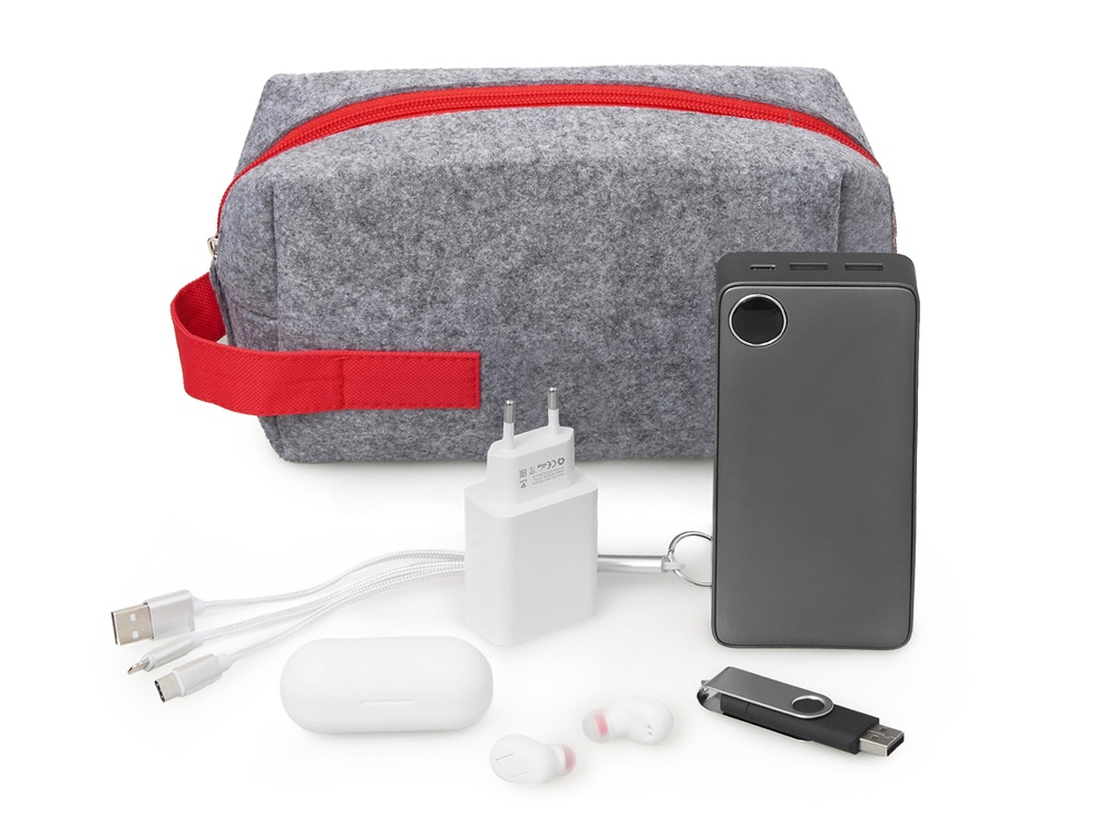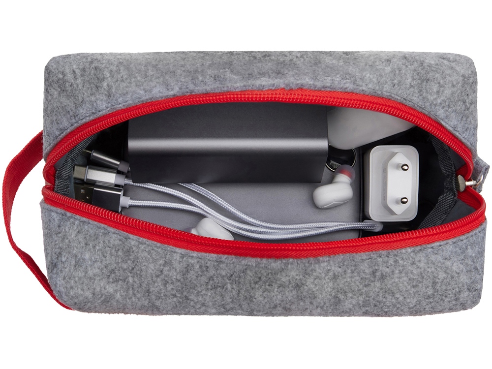 Органайзер для электроники и проводов Felt из RPET-фетра с ручкой, серый с красным