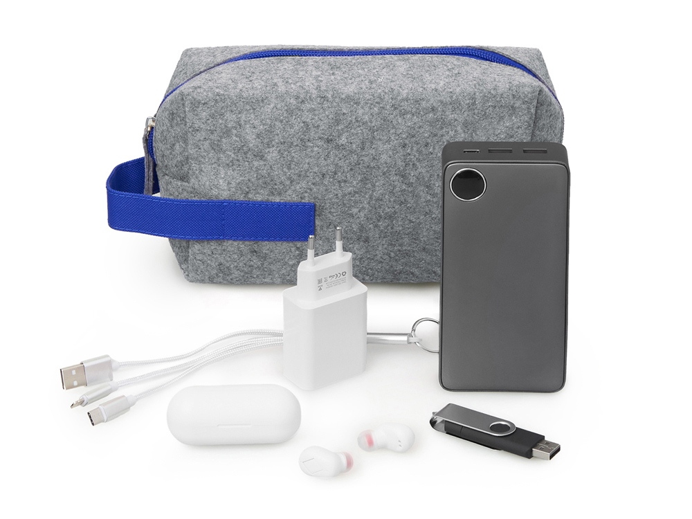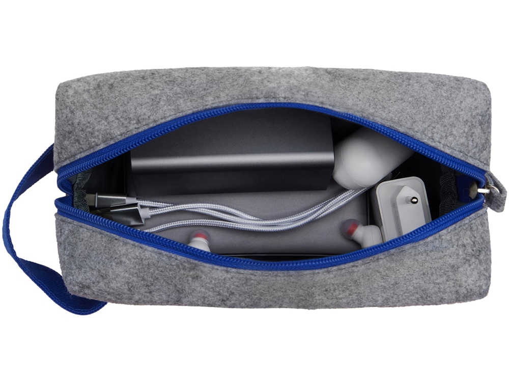 Органайзер для электроники и проводов Felt из RPET-фетра с ручкой, серый с синим