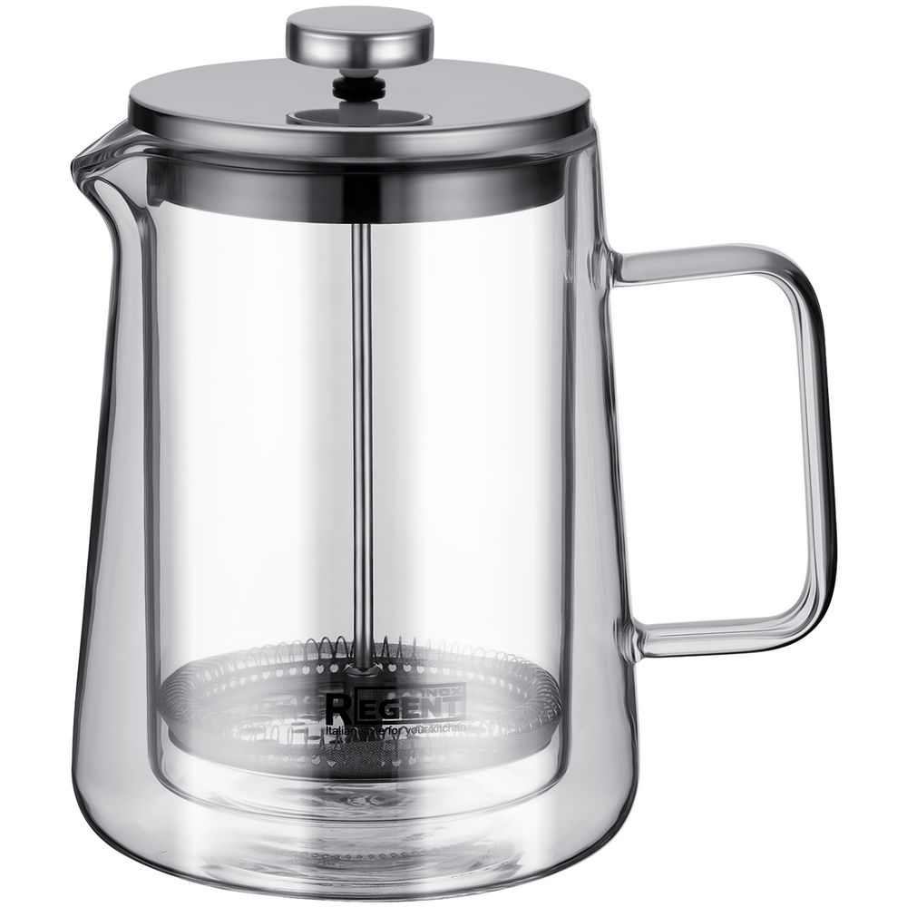 Френч-пресс внушительного объема для заваривания любимых напитков: чая, кофе, травяных настоев. Фильтр с поршнем и ситечком защищает напиток от посторонних частиц, а двойная колба из жаропрочного стекла дольше сохраняет напиток горячим.Емкость 800 мл.