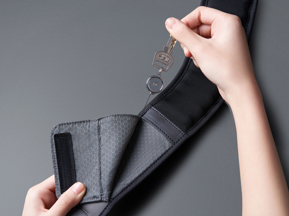 - карманы на липучках на лямке с RFID защитой и с ретрактором для ключей