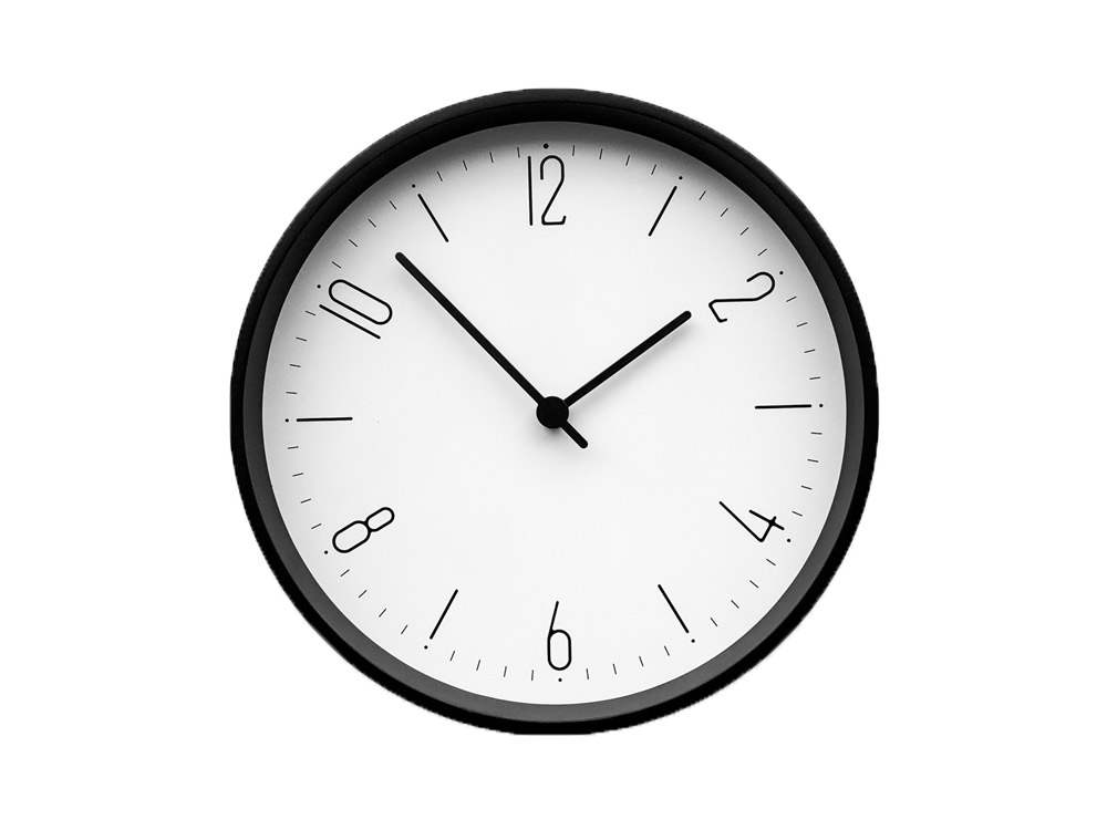 Черный обод, белый циферблат с черными цифрами - вечная классика для украшения интерьеров.