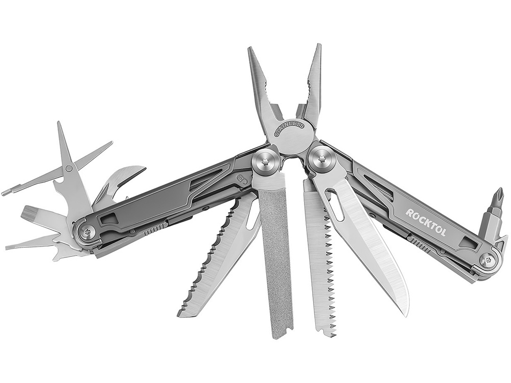 Многофункциональный инструмент Rocktol 19 в 1 с рукояткой из титана и сверхострым ножом из нержавеющей стали 7Cr17 твердостью до HRC 58. Они идеально подходят для тяжелых работ и приключений на свежем воздухе. Каждый инструмент оснащен предохранительным механизмом блокировки для дополнительной безопасности, а прочная конструкция из нержавеющей стали гарантирует его долговечность. Кроме того, компактная и легкая конструкция, а также прочный нейлоновый чехол позволяют легко носить его с собой, куда бы вы ни отправились. Не соглашайтесь ни на что, кроме надежности - выбирайте этот первоклассный мультитул для повседневных задач или для следующего приключения на свежем воздухе!