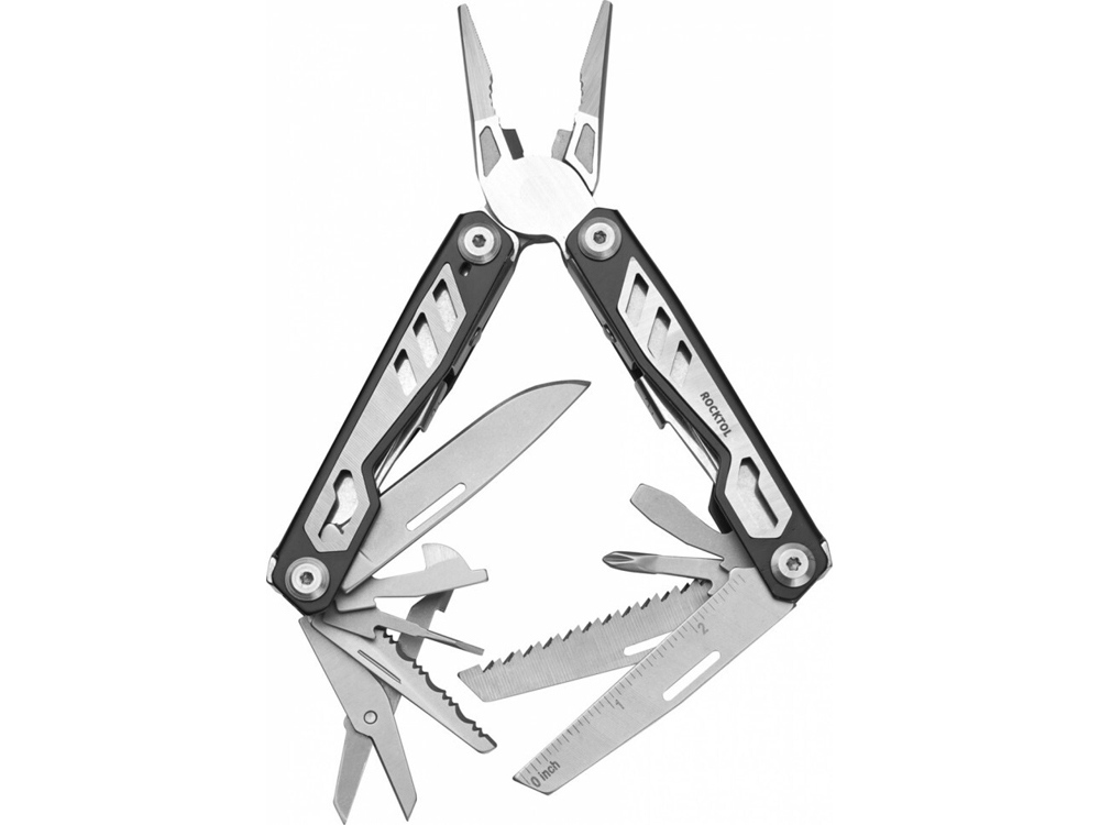 Мультитул Rocktol 16 в 1 с пружинными плоскогубцами, нержавеющая сталь, нейлоновый чехол