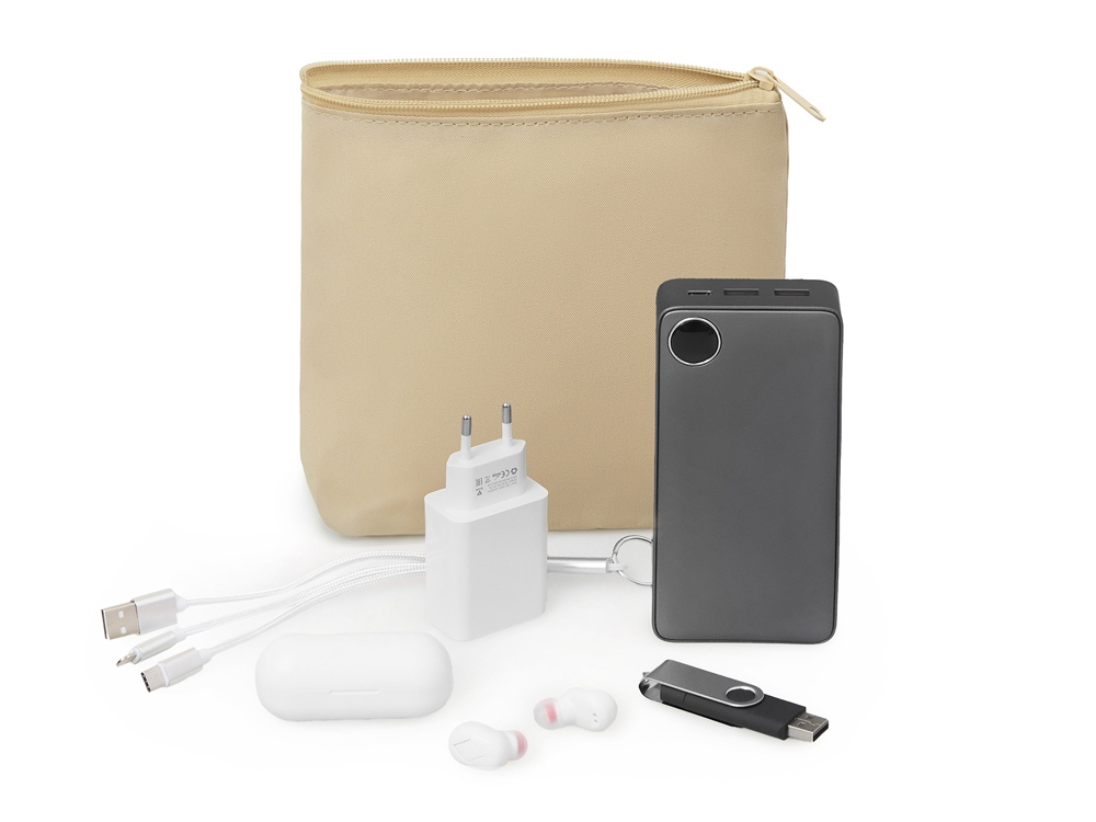 Органайзер для электроники и проводов Amalia из полиэстера 300D с подкладкой, бежевый