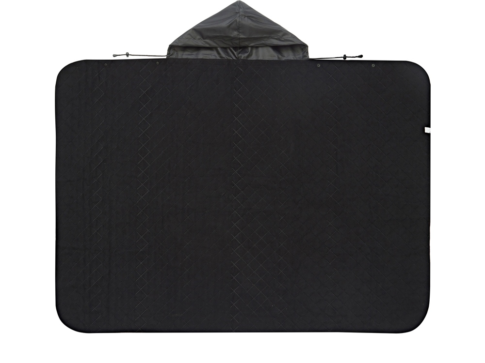 На внутренней стороне из флиса приятно и тепло сидеть, а наружная сторона из полиэстера с водоотталкивающим покрытием не позволяет пледу намокнуть или сильно испачкаться. Для больше удобства использования пледа во время дождя в комплекте идет капюшон, который фиксируется с помощью липучки. Накинув плед на плечи, застегните его на кнопки вверху и наденьте капюшон. Вы не промокните во время неожиданного дождя!