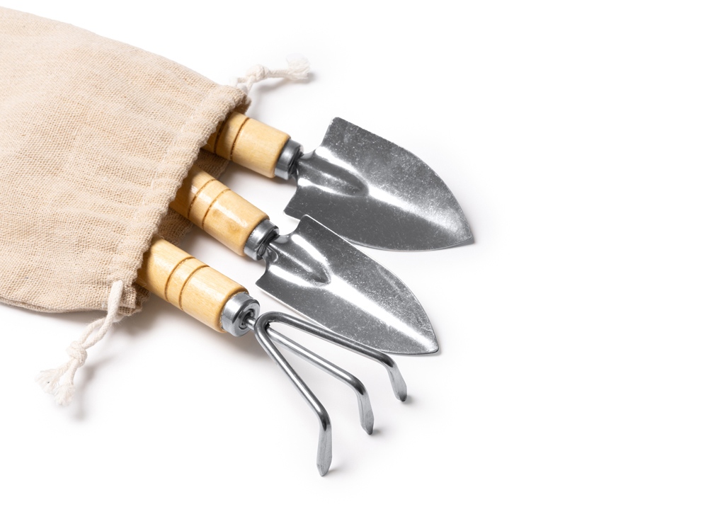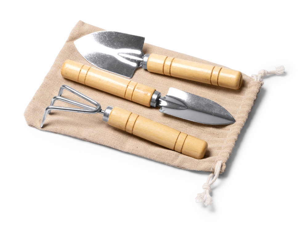 Садовый набор из 3 аксессуаров из нержавеющей стали и бамбуковая ручка. Включает большую и малую лопатки и грабли. В комплект входит хлопковый чехол. Презентация в дизайнерской эко-коробке.