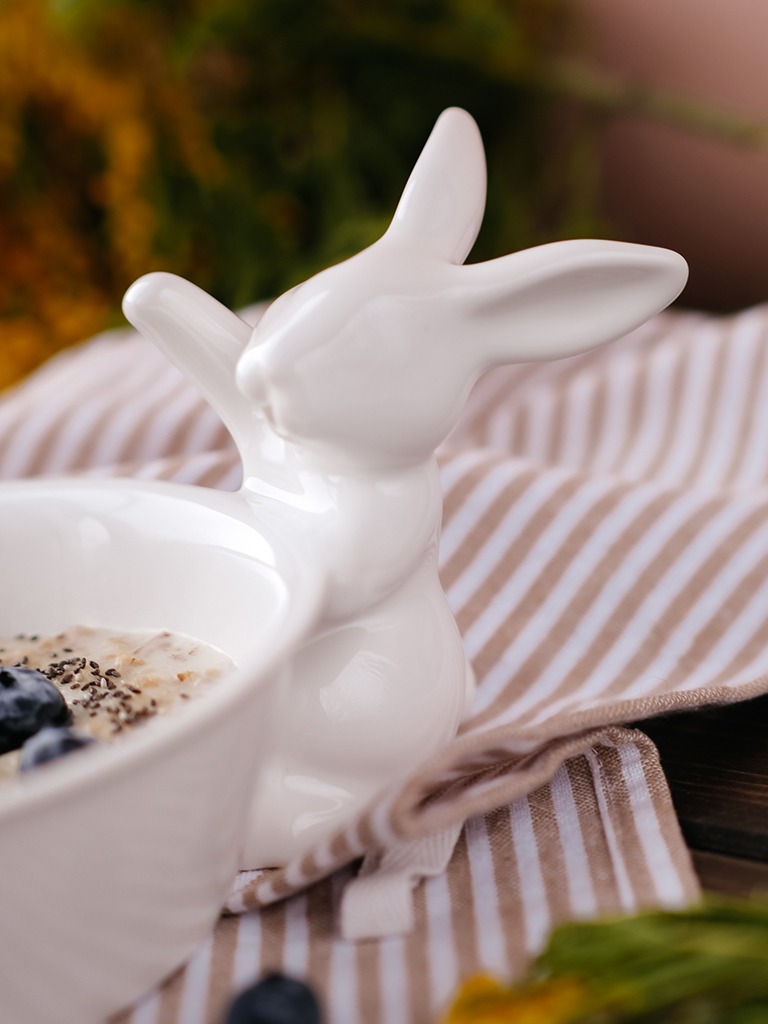 Мисочка с изображением кролика из фарфора — это очаровательное и изысканное изделие, которое отлично дополнит вашу посуду или станет приятным подарком. Мисочка выполнена из высококачественного фарфора, обладает гладкой и приятной на ощупь поверхностью. На поверхности изображен милый кролик, что придает ей особую нежность и уют. Размер мисочки удобен для подачи десертов, фруктов или использования в качестве декоративного элемента. Такой предмет отлично впишется в любой интерьер и создаст атмосферу тепла и уюта в вашем доме.