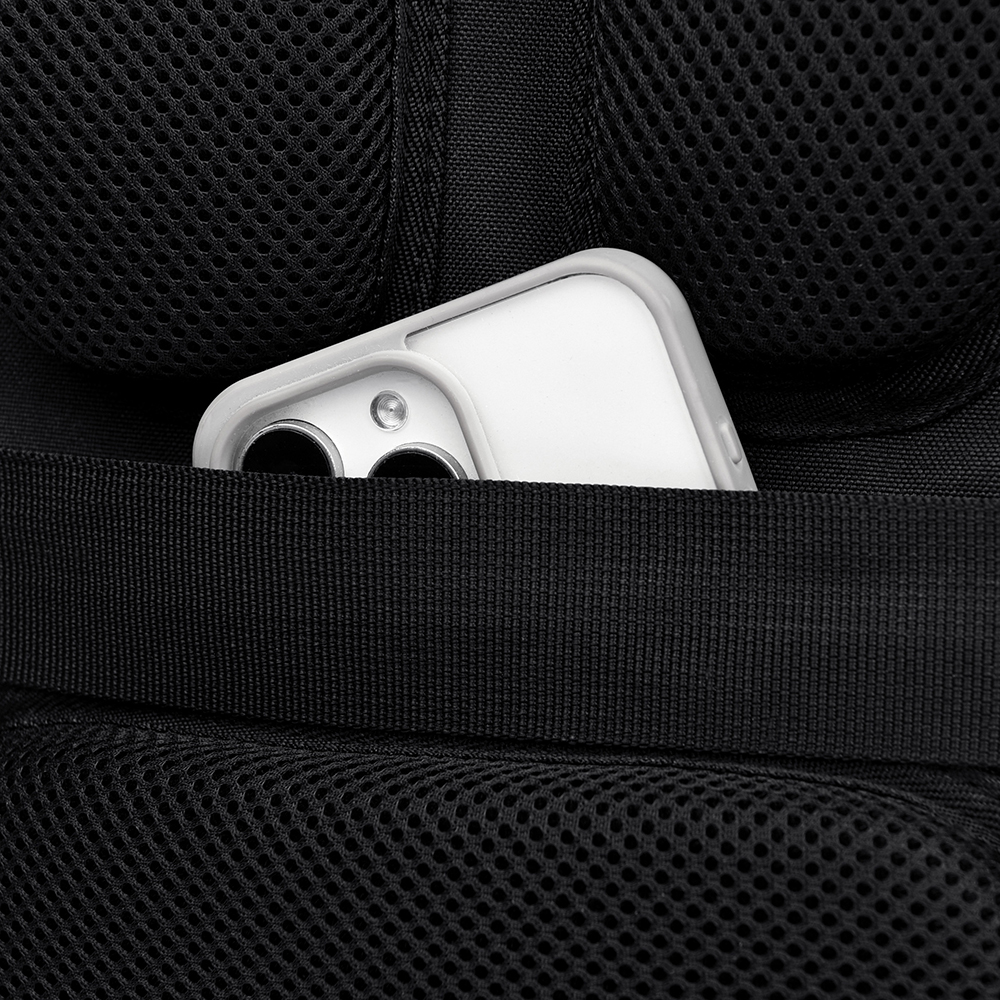 Двойное уплотнение анатомических накладок на задней стенке распределяет его вес и снижают нагрузку на позвоночник. Гигроскопичная вентилируемая трехслойная 3D-сетка на накладках задней стенки и подкладке плечевых ремней предотвращает скольжение и обеспечивает отличную вентиляцию и комфорт при контакте с кожей и одеждой.