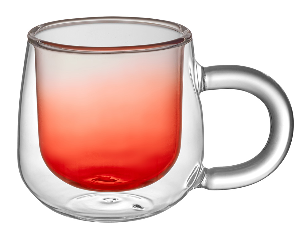 Кружка с двойными стенками с широкой ручкой и градиентным покрытием Fog, красный