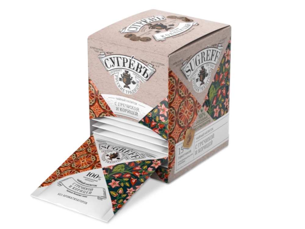 Чайный напиток с гречихой и корицей в индивидуальном саше конверте, 15 пакетиков