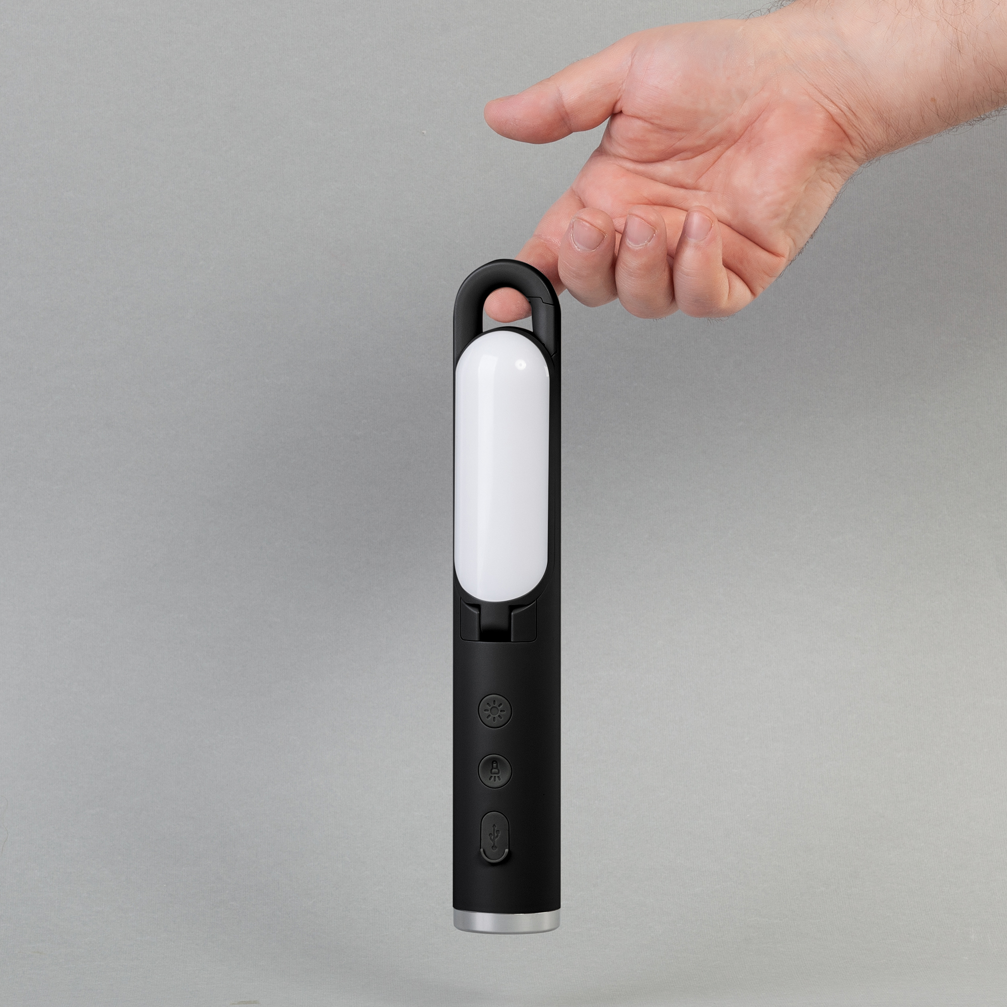 Лампа с теплым объемным светом 5 режимов, 2 сегмента с независимой регулировкой угла 0-90º. Фонарь с холодным светом 4 режима, направленный луч для построения маршрута. Встроенная батарея емкостью 1200 mAh, зарядка через разъем type-C, индикатор 25/50/75/100%.