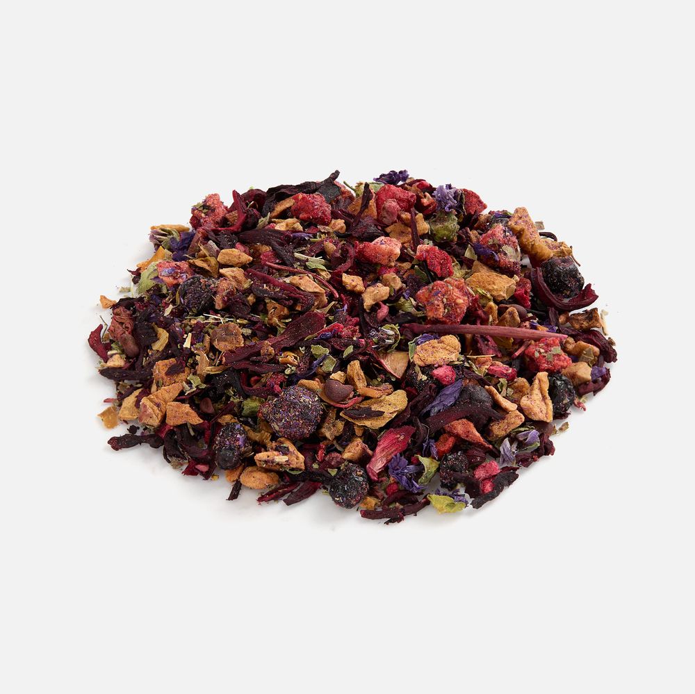 - Чай на основе каркаде и ягод «Ягодная поляна» Состав: каркаде, кусочки яблок, ягоды брусники сублимированные, ягоды черники сублимированные, кусочки малины сублимированные, кусочки клубники сублимированные, цветы мальвы, лист ежевики, ароматизатор черники и малины.