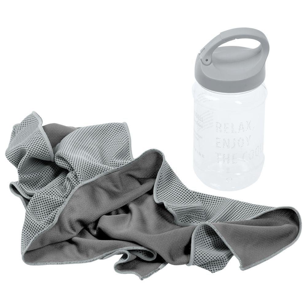 | Материал | бутылка - пластик; полотенце - полиэстер, 45%, нейлон 55%, плотность 160 г/м² |