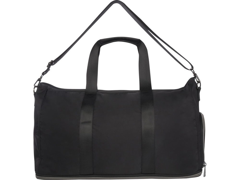 Расширяемая спортивная сумка Rhine легко трансформируется и становится стильной для различных случаев благодаря своему элегантному дизайну и универсальности. Изготовлен из высококачественного переработанного нейлона, сертифицированного согласно GRS, с мягкой подкладкой из переработанного РЕТ-пластика и элементами из высококачественной полиуретановой кожи. В спортивной сумке имеется просторное основное отделение с большим герметичным карманом из термополиуретана, 2 кармана на рукавах, специальное отделение для обуви, надежный потайной карман на задней стороне (также выполняющий функцию ремня для крепления к ручке чемодана) и съемные плечевые ремни, которые можно регулировать для максимального комфорта. Что действительно отличает эту спортивную сумку, так это ее расширяемый слой, объем которого можно увеличить до 42 литров. Емкость: 35-42 литров. Выдерживает вес до 20 кг. Не содержит ПВХ. GRS certified recycled nylon.