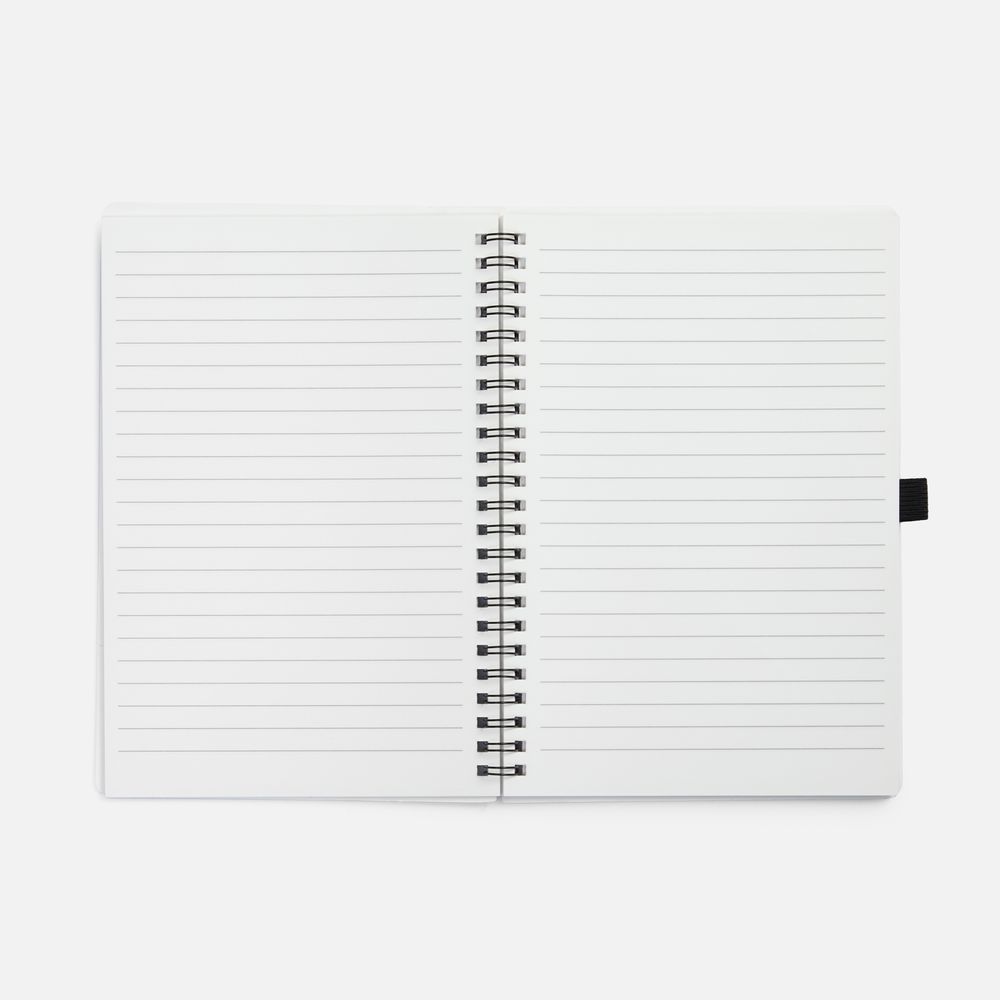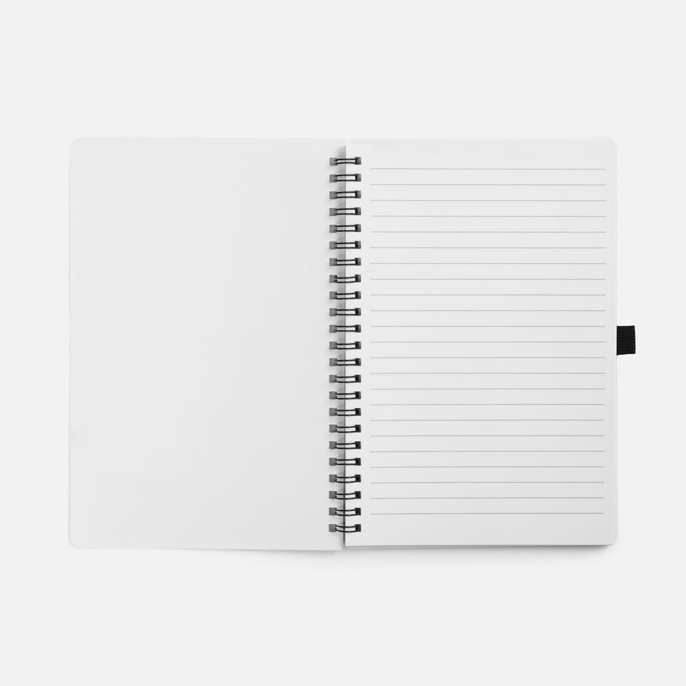 Блокнот из каменной бумаги на пружине с резинкой для ручки.