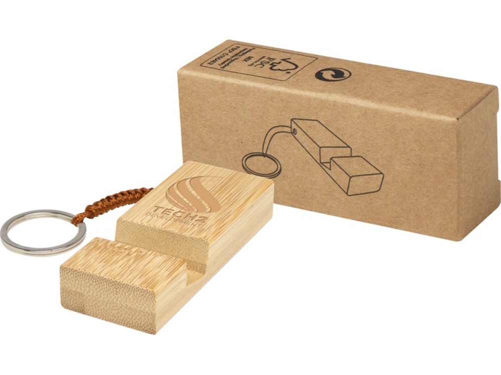 Держатель для телефона с брелком для ключей Bosona изготовлен из бамбука. Может быть как стильным аксессуаром, так и подставкой для телефона, которая всегда под рукой.