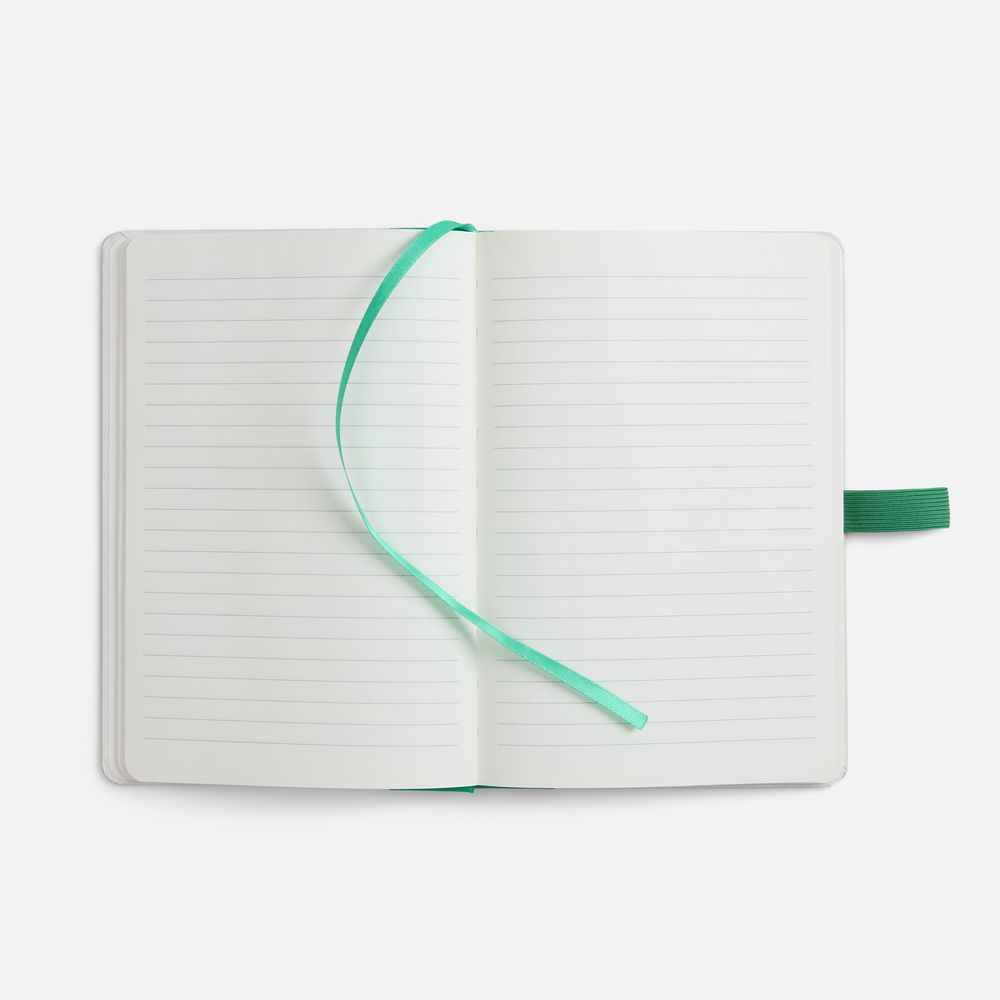Яркий цветовой акцент на тканевом корешке, петле-резинке для ручки и ляссе сразу привлекают внимание и добавляют MilkMake радостной энергии. Особенное удобство состоит в том, что петля для ручки проходит через обложку: так легко закрыть блокнот, чтобы защитить свои записи. Аккуратная линовка не отвлекает от самого главного: идей и мыслей, которые так хочется сохранить на бумаге.