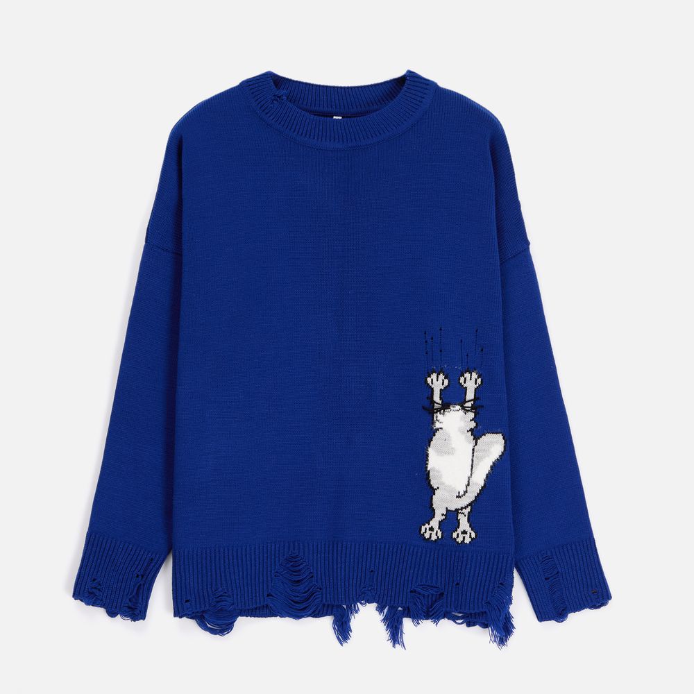 Мягкий джемпер с круглым вырезом и милым пушистым рисунком в виде котика создает настроение легкой несерьезности. Рваные края изделия добавляют современную нотку, а резинка на вороте, манжетах и по низу обеспечивает удобную посадку. Джемпер Sharpick — идеальный выбор для тех, кто ценит комфорт и хочет разнообразить свой гардероб.