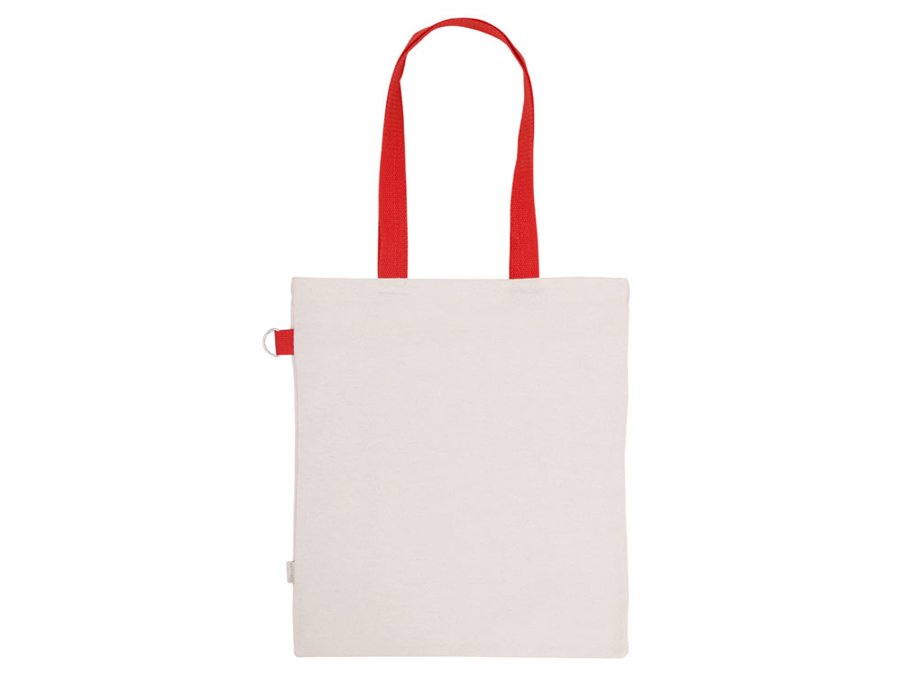 Сумка-шоппер из полностью переработанных материалов с большим контрастным карманом спереди станет стильным аксессуаром для любого случай, как поход в магазин, поездка на пикник или в путешествие. Сбоку предусмотрено д-кольцо для крепления ремувок с вашим логотипом, выполненное из переработанного металла.