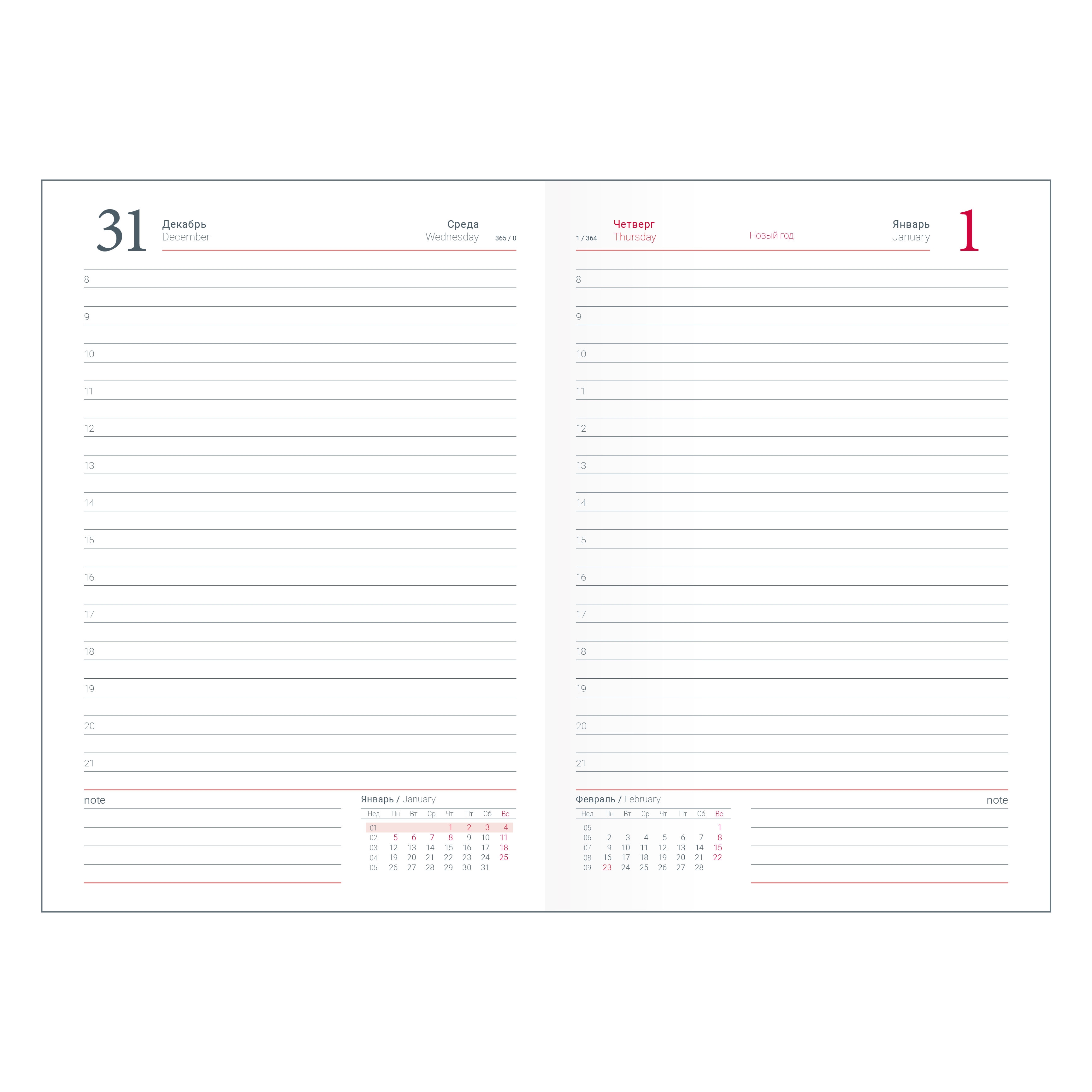 Удобный датированный на 2026 год ежедневник А5 формата (140х200 мм) будет не только незаменимым помощником в ведении дел, но и станет стильным аксессуаром, отражающим индивидуальность владельца.