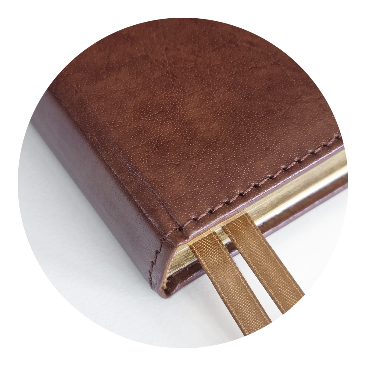 Твердая с поролоном обложка из гладкой рециклированной натуральной кожи с прострочкой по периметру имеет удобный кармашек для мелочей на нахзаце и скругленные уголки, которые не позволят порвать подкладку сумки. Благодаря крепкому ниткошвейному скреплению ежедневник верно прослужит очень долгое время.