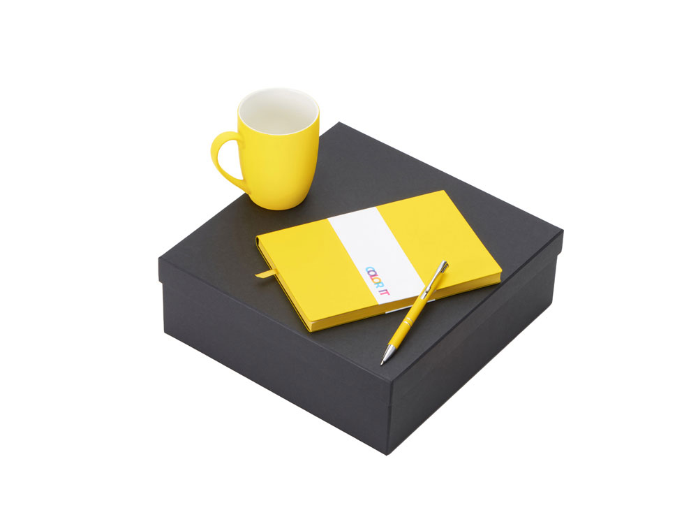 Подарочный набор с блокнотом С1, металлической ручкой и кружкой, желтый