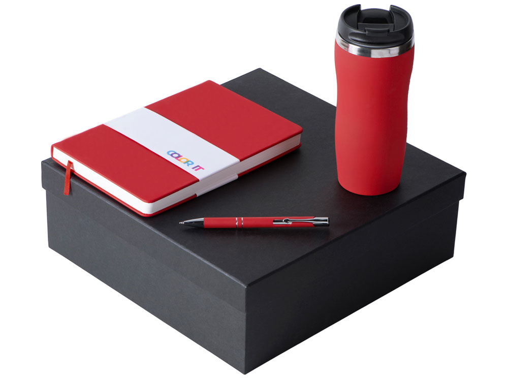 Подарочный набор с блокнотом С2, металлической ручкой и термокружкой, красный