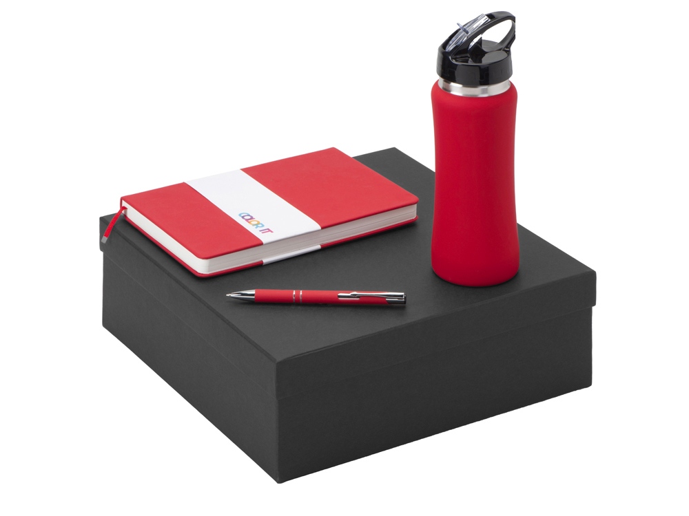 Подарочный набор с блокнотом С2, металлической ручкой и бутылкой для воды, красный