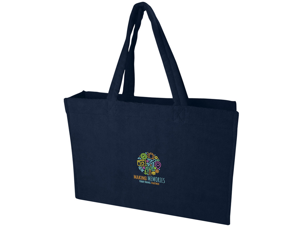 Пляжная эко-сумка Siam объемом 13 л из переработанной махровой ткани, сертифицированной GRS - Темно - синий