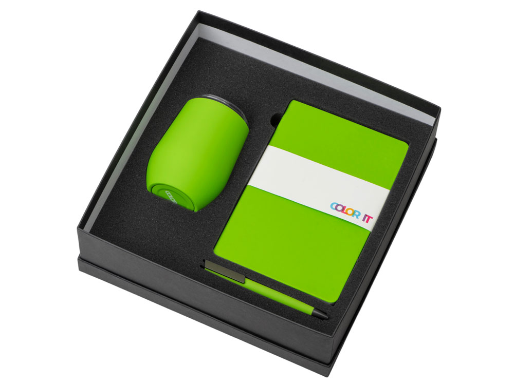 Подарочный набор c блокнотом C1, ручкой и термокружкой, зеленое яблоко