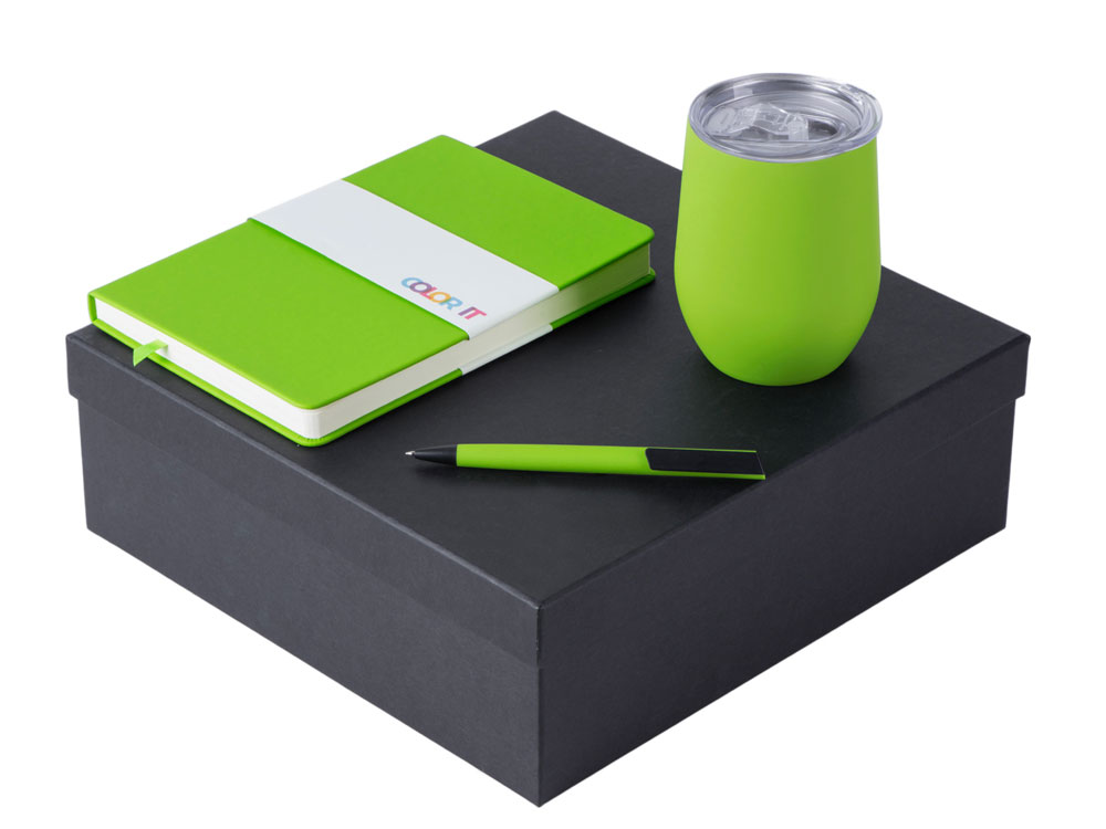 Подарочный набор c блокнотом C2, ручкой и термокружкой, зеленое яблоко