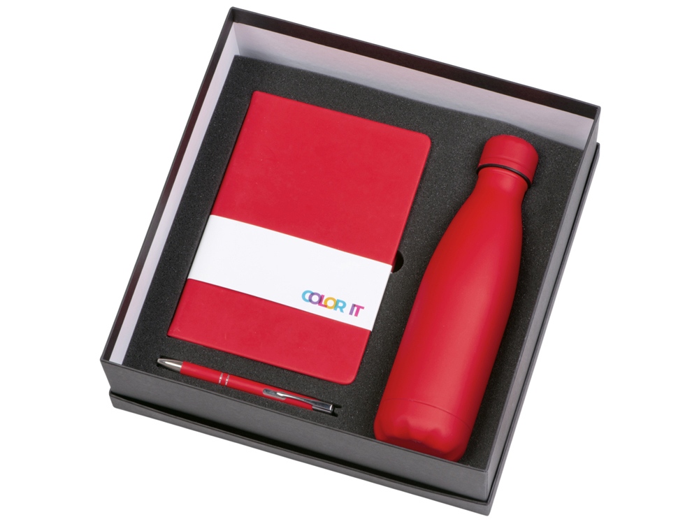 Подарочный набор с блокнотом С1, металлической ручкой и термобутылкой, красный