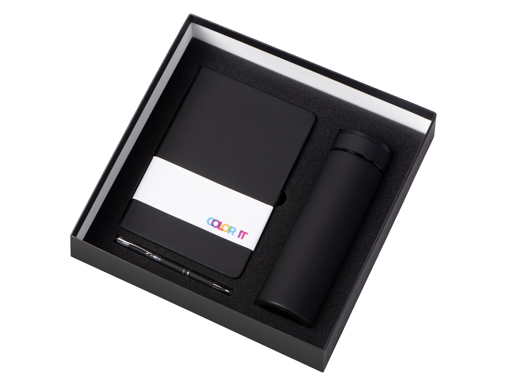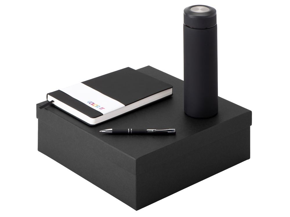 Подарочный набор с блокнотом С2, металлической ручкой и термосом, черный