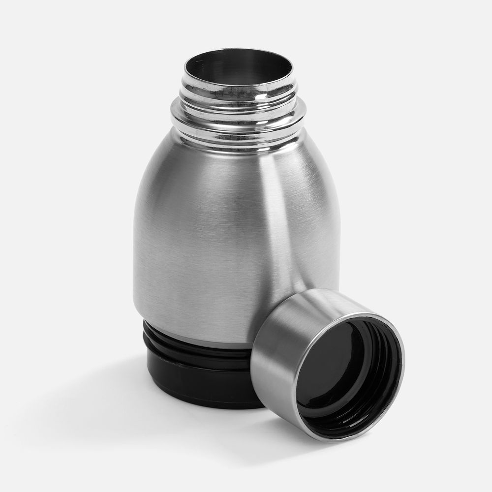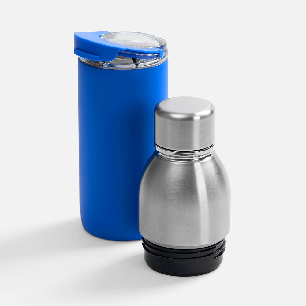 Varianti — это яркий пример посуды с двойной функциональностью. Один и тот же корпус можно превратить как в термостакан для чая и кофе с пластиковой крышкой, так и в термобутылку для прохладительных напитков со стальной крышкой.