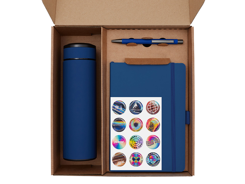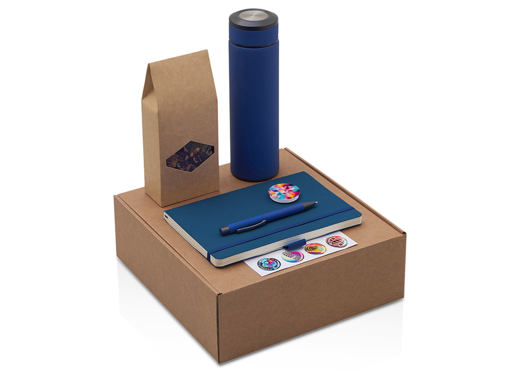 Подарочный набор с термосом, блокнотом, ручкой и чаем, синий
