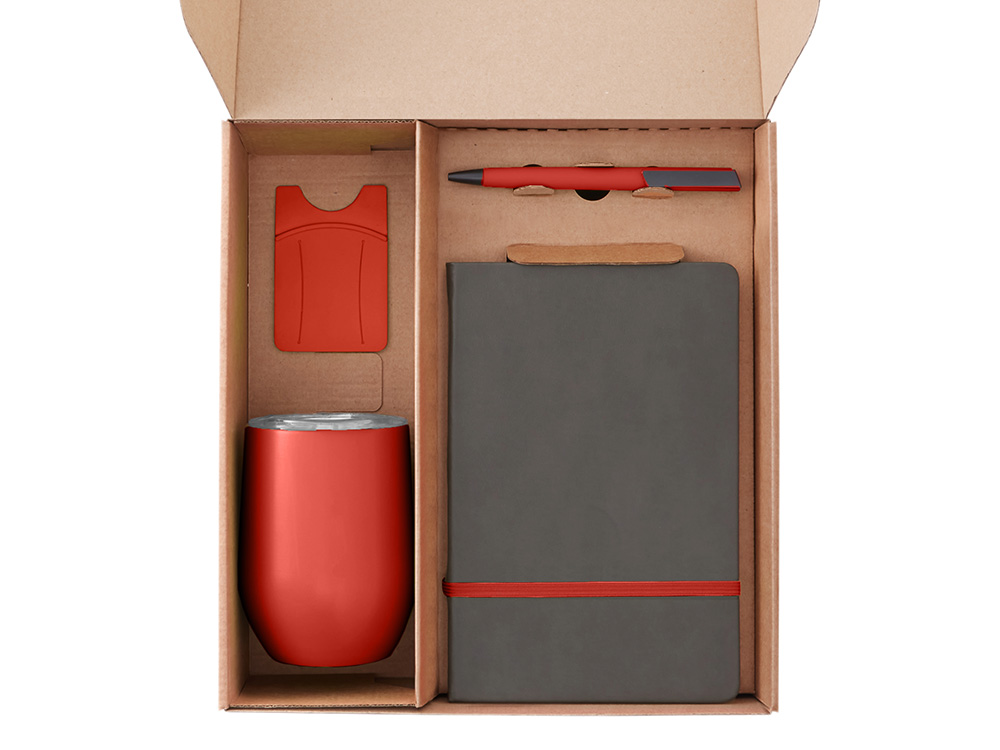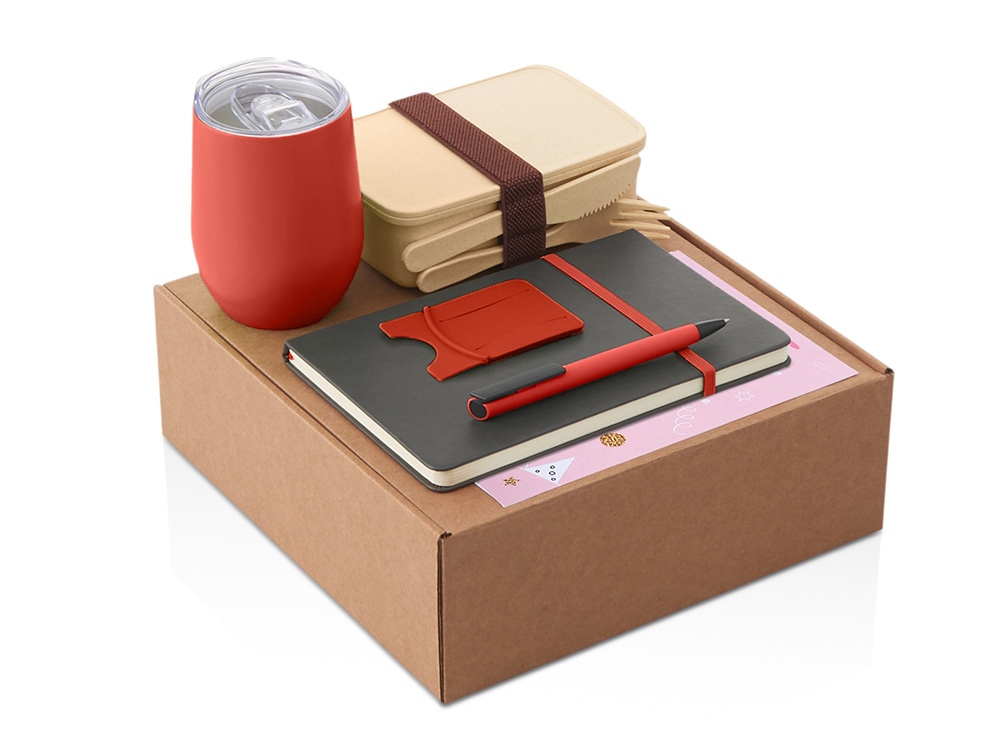 Набор с термокружкой, блокнотом, ручкой и ланчбоксом Refreshment, красный