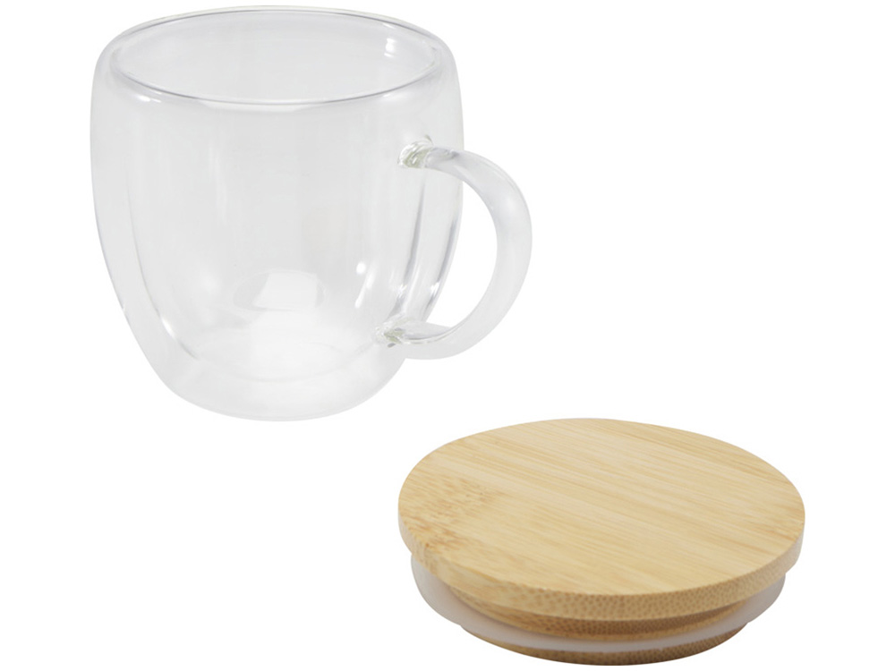 Стеклянная кружка Lenora емкостью 250 мл с бамбуковой крышкой - прозрачный