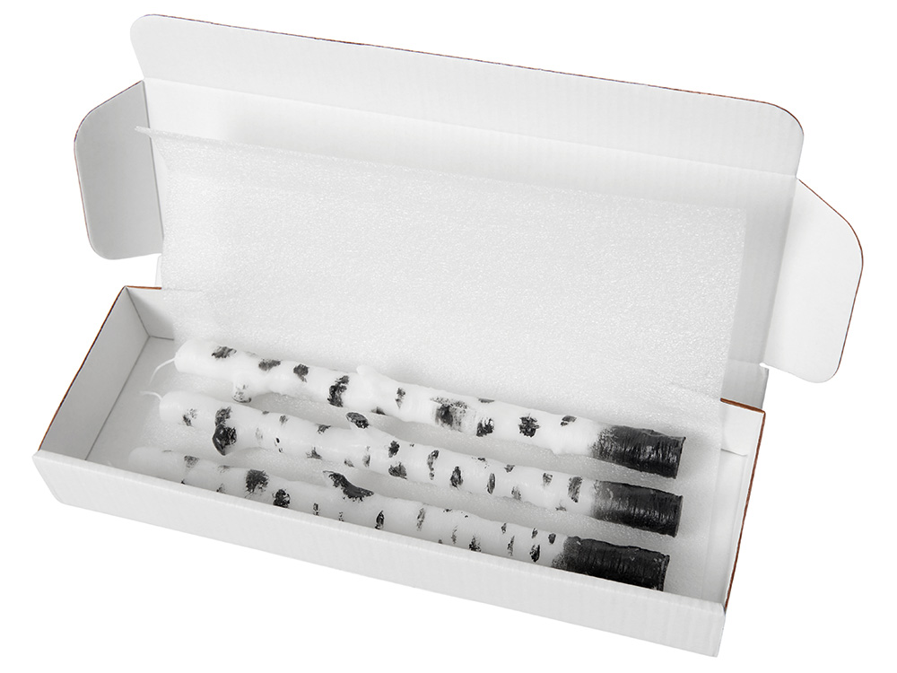 Детализированная фактура коры и мягкие оттенки белого с тёмными вкраплениями создают реалистичный образ, будто свечи только что вышли из леса. Они станут красивым акцентом в сервировке стола, уютным элементом декора или тёплым подарком для ценителей природы.
