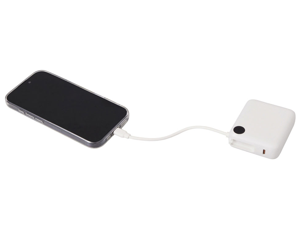 - Встроенный двунаправленный кабель-петелька USB-C — всегда под рукой! Заряжает смартфоны по USB-C (в т.ч. новые iPhone), а также заряжается сам по встроенному кабелю.