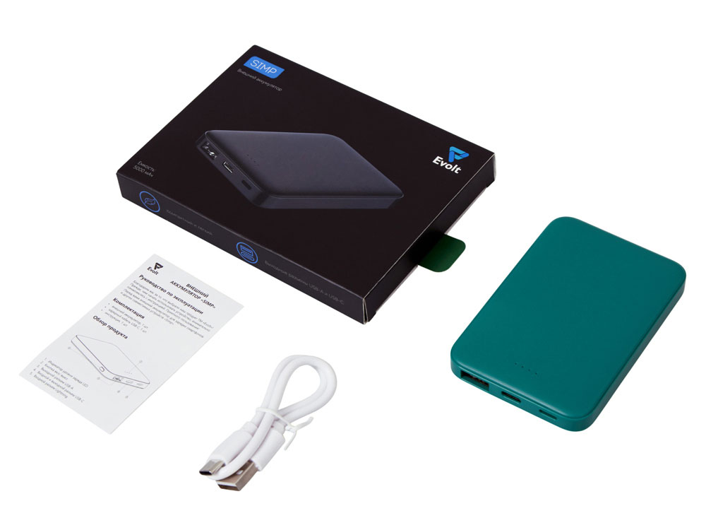 Внешний аккумулятор Simp, 5000 мАч, зеленый