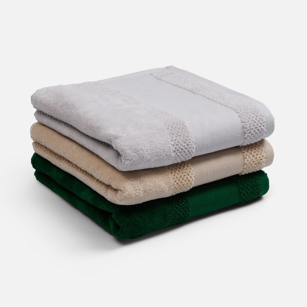 Пышная рельефная структура создает эффект роскошного спа-ухода и быстро впитывает влагу благодаря расположенным пучками петлям, а изящная полоса из стриженных петель с эффектом велюра добавляет элегантности. Практичный гладкий бордюр станет идеальным холстом для нанесения символики и позволит создать уникальный персональный подарок.