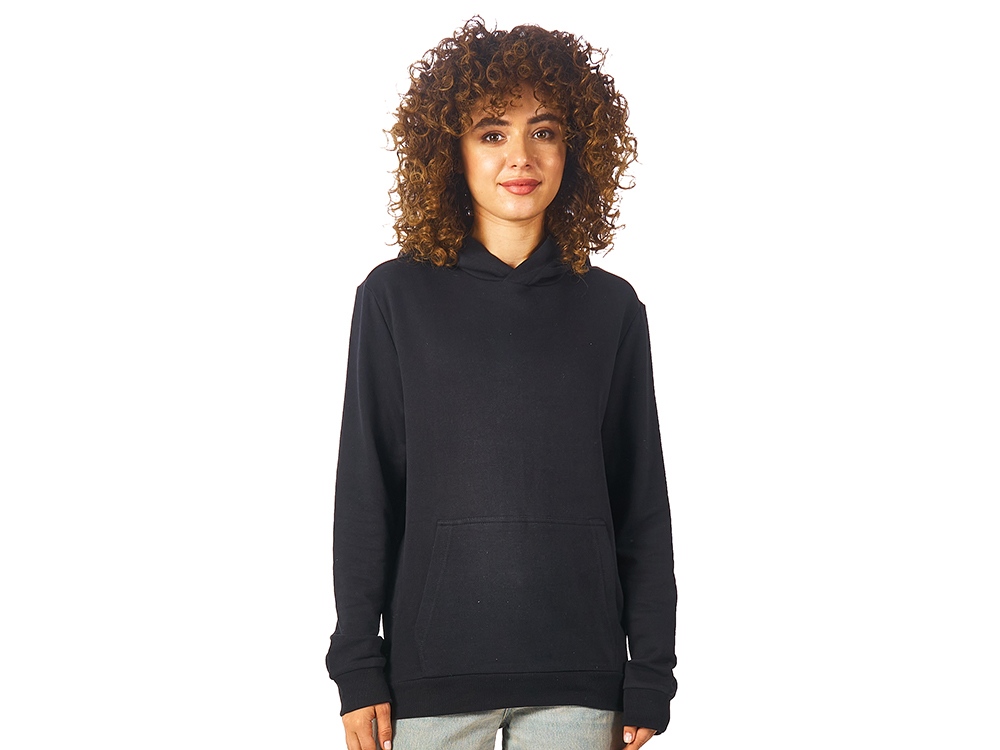 Толстовка с капюшоном (худи) из плотного хлопкового 3х ниточного футера. В капюшоне подкладка в тон, а горловина спинки дополнительно укреплена тесьмой с выделкой елочка. Капюшон без шнурков – ничего не отвлекает от вашего брендирования. Манжеты и низ изделия отделаны рибом 2х2. Глубокий комфортный карман кенгуру на полочке. Полотно из утяжеленного хлопкового футера внутри с петельками без начеса.