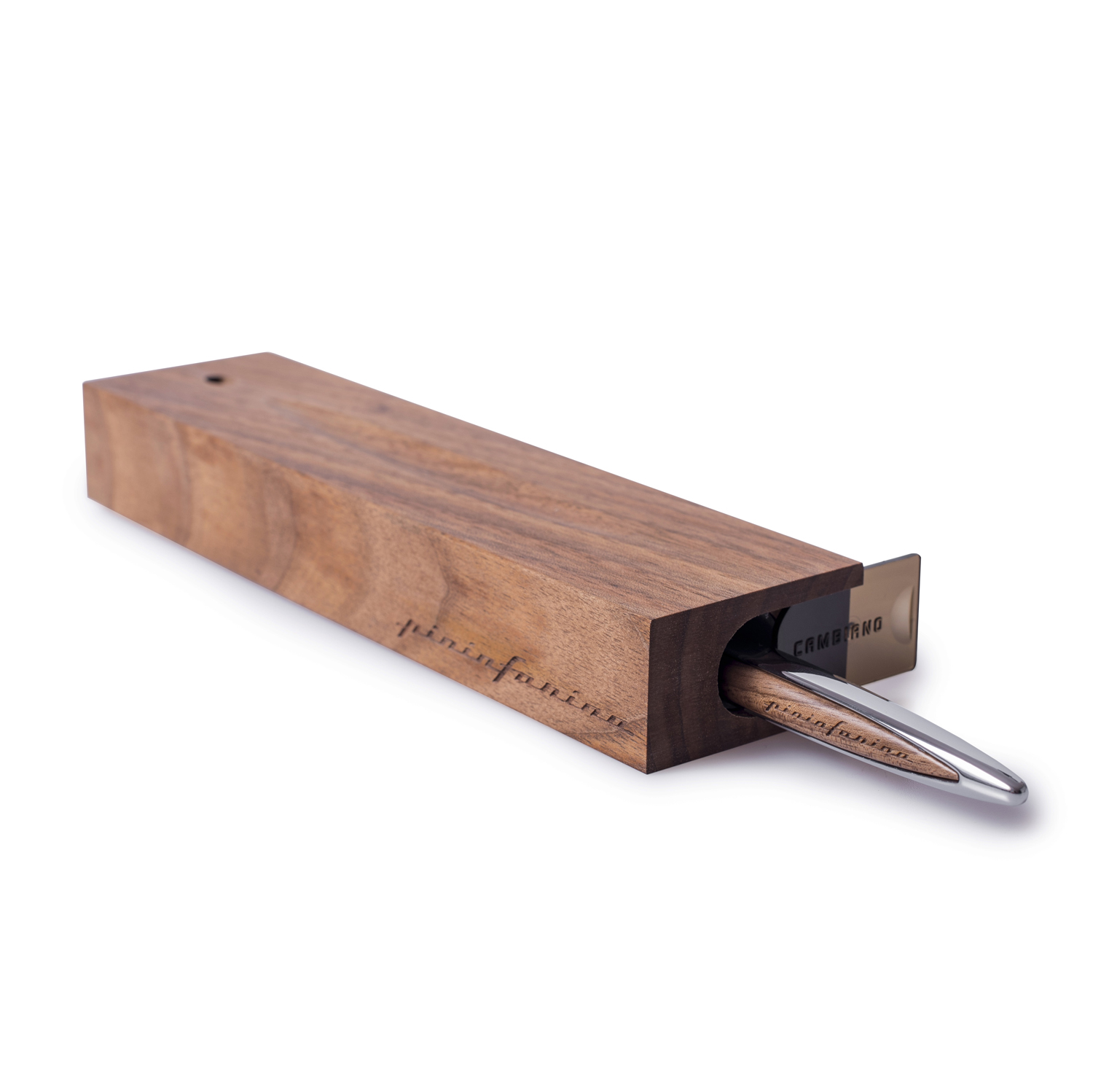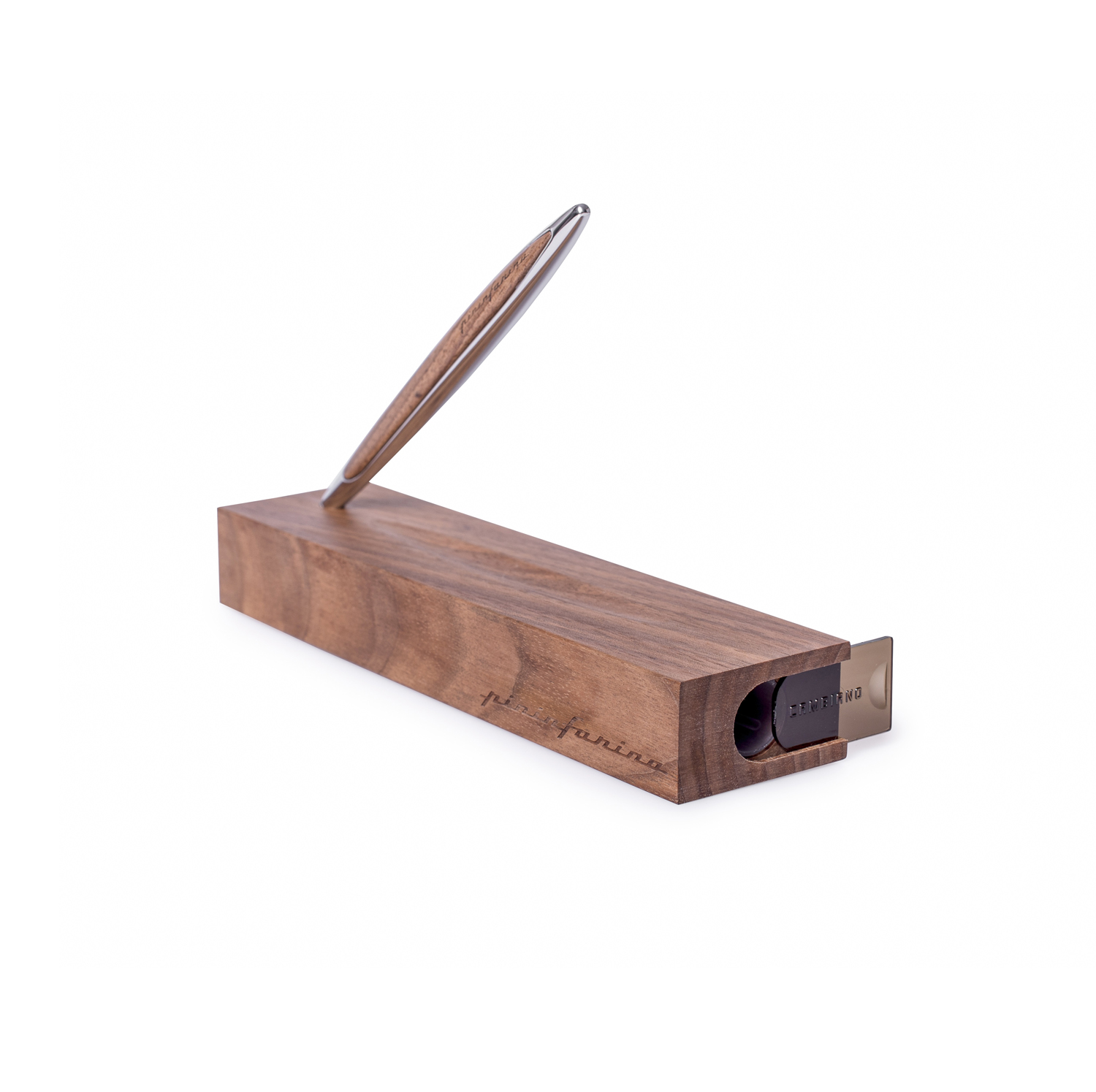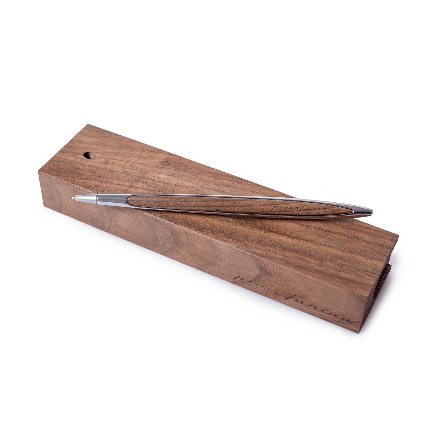 Флагманская ручка дизайнерского дома Pininfarina сочетает в себе роскошь и смелые дизайнерские решения. Pininfarina Cambiano - это объединение различных материалов, технологичность и элегантные линии. В ручке используется шариковый стержень CROSS® 8513 с синей пастой. Алюминиевый корпус отшлифован до блеска, в сочетании с деталями из дерева грецкого ореха - ручка выглядит элегантно и стильно. Вес ручки 39 гр, длина 16 см. Коробка выполнена из дерева грецкого ореха и одновременно является настольной подставкой для ручки.