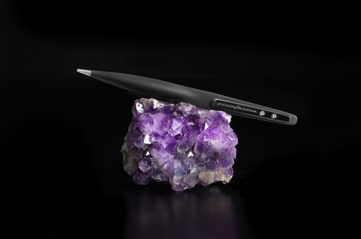 Pininfarina Space черного цвета - тонкая ультралегкая ручка из магния на алюминиевой подставке символизирующей земную орбиту. Эта изящная подставка будет необычным аксессуаром на письменном столе, служа подставкой для ручки. Вес ручки всего 15 гр при стандартной длине 15,7 см. Пишущий наконечник Ethergraf, который изготовлен из сплава металлов по запатентованной технологии. Наконечник не содержит свинец и алюминий, производится вручную итальянскими мастерами и практически не расходуется за десятилетия использования. При соприкосновении с поверхностью бумаги, происходит химическая реакция и наконечник оставляет серебристый след, который напоминает цвет графитового карандаша, но обладает большей стойкостью. Идеально пишет на каменной бумаге. Pininfarina Space - была подарена экипажу Международной космической станции во время последней миссии Vita, ручка успешно использовалась астронавтами во время полета, ведь она пишет в условиях микрогравитации в отличие от обычных ручек.