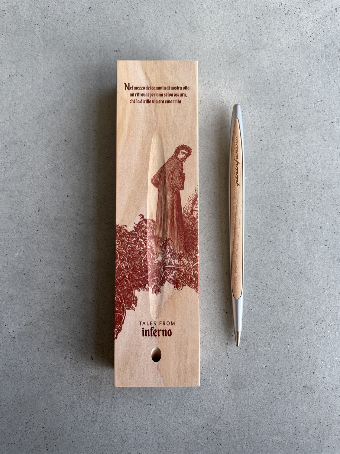 Лимитированная коллекция бренда Pininfarina в память о Данте Алигьере, приуроченная к 700-летию его смерти, с изображениями TALES FROM INFERNO - первой части Ад знаменитой Божественной Комедии. Коробка из массива кедра, которая является одновременно настольной подставкой для вечной ручки Cambiano, с иллюстрацией Гюстава Доре, изображающей темный лес, как аллегорию греха, где заблудился Данте, и где каждый человек может заблудиться на пути своей жизни. Вечная ручка имеет необычный пишущий узел в виде наконечника Ethergraf, который изготовлен из сплава металлов по запатентованной технологии. Он не содержит свинец и алюминий, производится вручную итальянскими мастерами и практически не расходуется за десятилетия использования. При соприкосновении с поверхностью бумаги, происходит химическая реакция и наконечник оставляет серебристый след, который напоминает цвет графитового карандаша, но обладает большей стойкостью. Идеально пишет на каменной бумаге. Корпус ручки выполнен из алюминия с вставками из кедрового дерева. Вес ручки 39 гр, длина 16 см.