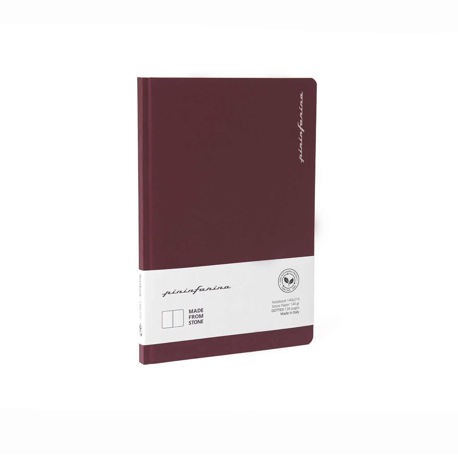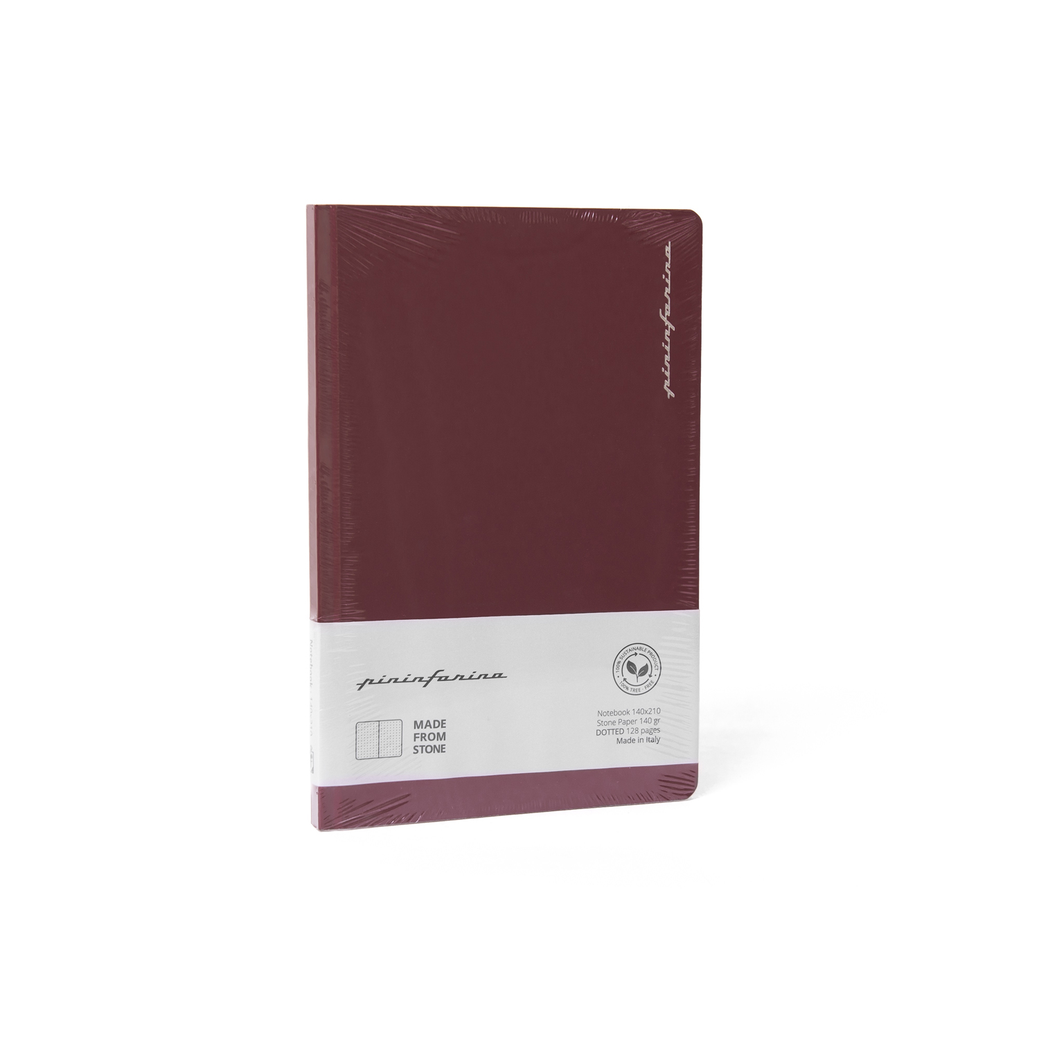 Тетрадь с листами из каменной бумаги. Дизайнеры Pininfarina создали элегантный минималистский дизайн для своего идеального дополнения к линейке вечных ручек Pininfarina Segno, так как именно на каменной бумаге они оставляют очень яркий след. Красная твердая обложка с покрытием soft-touch фиксируется резинкой того же цвета. Тетрадь размером А5 (14х21 см) содержит 64 листа в точку. Листы сделаны из каменной бумаги, экологической альтернативы обычной целлюлозной бумаге, которая не требует вырубки деревьев, использования воды и агрессивных химических веществ, тем самым защищая окружающую среду. Она состоит из 80% камня (карбоната кальция) и на 20% из связующего его нетоксичного полиэтилена высокой плотности (HDPE). Это бумага нового поколения с уникальными характеристиками. Каменная бумага на 100% водоотталкивающая, ее можно мыть. Жидкости, включая масло, не изменяют ее структуру, поскольку она не содержит древесных волокон, которые поглощают жидкости, в следствие чего традиционная бумага покрывается пятнами, деформируется и разрушается. Каменная бумага устойчива к разрыву, что также способствует ее долговечности. Она имеет приятный бархатистый эффект и не отражает свет. Плотность бумаги 140 гр/м2. Сделана в Италии.