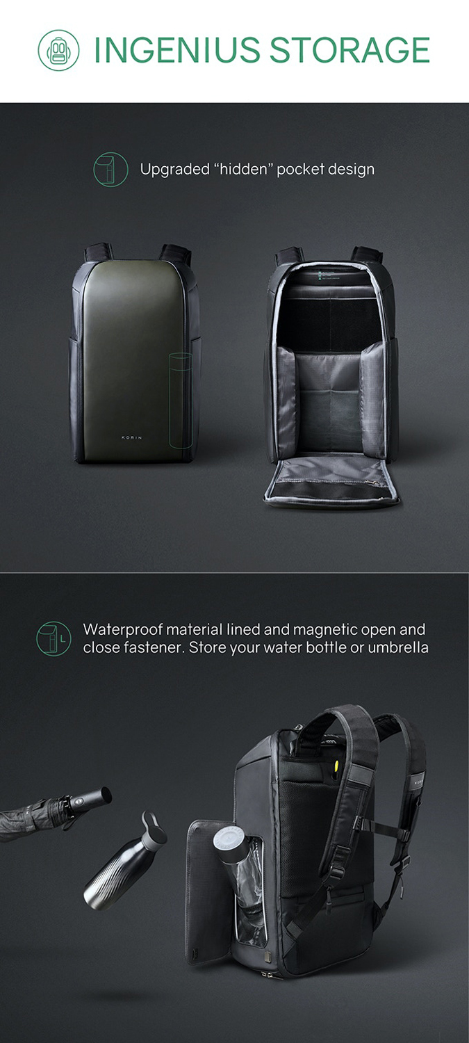Рюкзак KORIN FlipPack 47х30х17 см, зеленый/черный